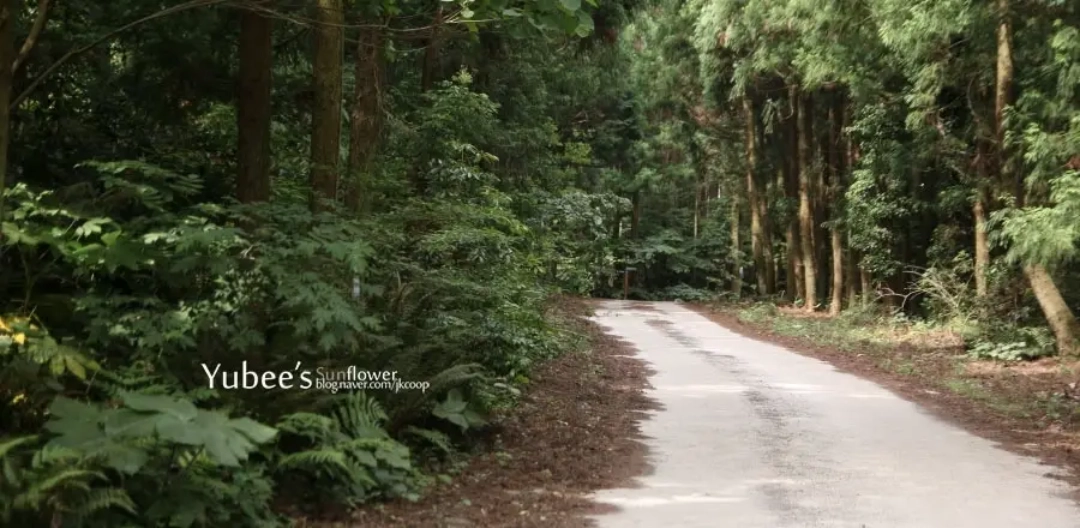 둘레길은 본향당 왼쪽으로 가면 되고 오른쪽 사진처럼 키가 큰 나무들이 양쪽으로 빼곡하게 자라고 있습니다.