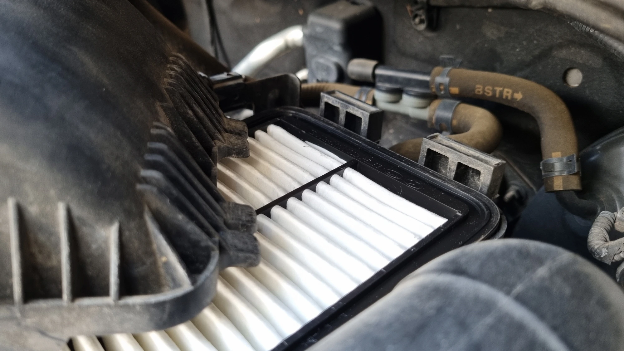 앞서 설명드렸던 것처럼 에어필터 커버에 연결되어 있는 인테이크 파이프의 밴드를 이완시키고 에어필터 커버에서 인테이크 파이프를 분리해도 되지만 저는 이 배관을 빼고 끼우는 과정이 더 힘들어서 에어필터 커버를 여는 방법으로 했습니다.