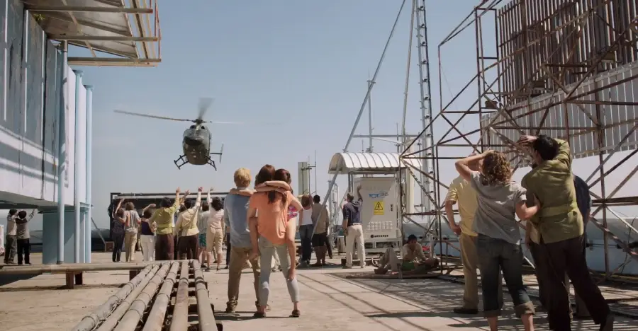 다행히 잭과 가족은 폭도들을 피해 옥상으로 안전하게 대피했고 미침 구조 헬기가 도착하면서 사람들은 안도한다.