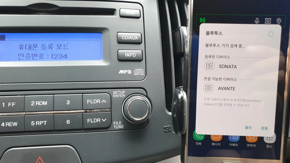 자동차 오디오 중 블루투스 기능이 있는 오디오는 휴대폰이나 오디오 기기를 블루투스로 연결할 수 있습니다.