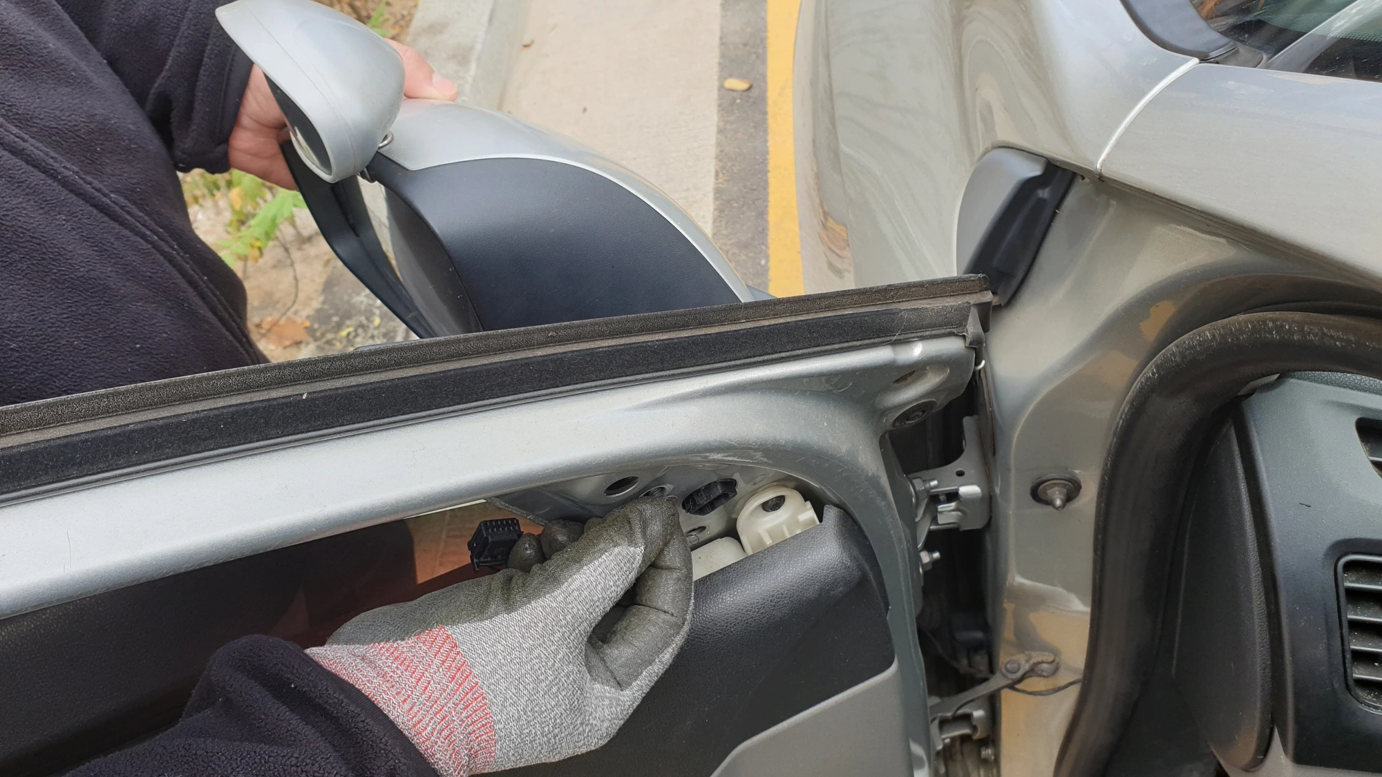 올뉴모닝 테일게이트 트렁크 열림 버튼 손잡이 교체 방법, 배선 연결 방법올뉴모닝 TA 트렁크 손잡이 버튼해당 자동차는 2014년 출고된 모닝 올뉴모닝 Ta입니다.트렁크(테일게이트) 손잡이에 버튼을 눌러서 열 수 있는데 왼쪽 사진처럼 바깥쪽 고무가 모두 떨어져서 가운데 버튼과 회로 기판이 그대로 보이는 상태입니다.후방카메라가 있는 차량은 손잡이 버튼 옆에 카메라가 있지만 해당 차량은 후방카메라 옵션을 선택하지 않아서 버튼만 있습니다.해당 차량은 스위치 부품만 따로 주문할 수 없고 가운데 사진처럼 로고가 있는 손잡이까지 일체형으로 되어 있는 부품만 주문할 수 있습니다.손잡이까지 일체형으로 되어 있기 때문에 손잡이 색깔까지 차량 색깔과 맞춰야 하는 것 때문에 부품 가격도 올라갑니다.그런데 동일 제조사의 경차 ..