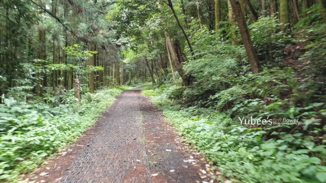 당오름 둘레길 역시 가운데 사진처럼 둘레길 산책코스 양쪽으로 키 큰 삼나무가 자라고 있고 밖이 보이지 않을 정도로 빼곡합니다.