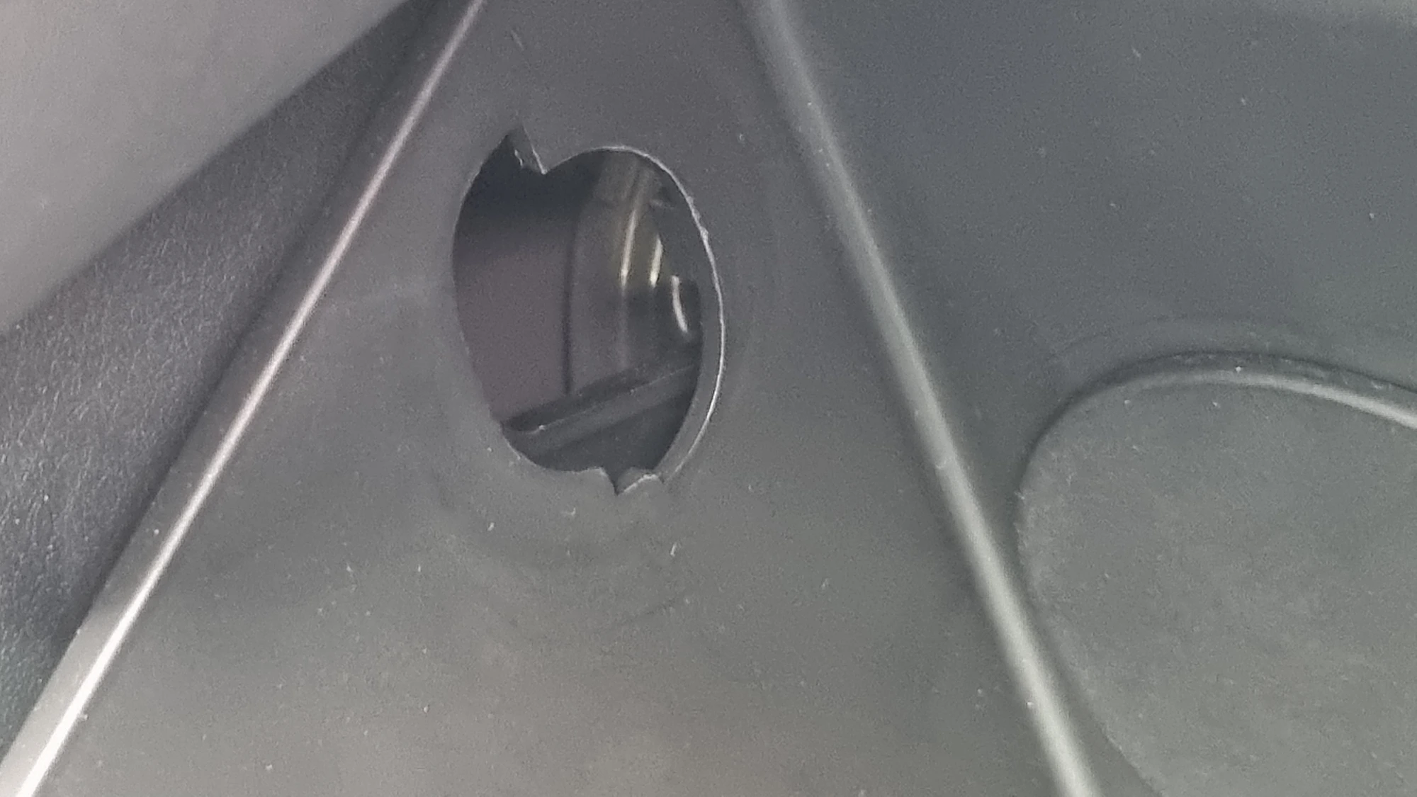 마지막으로 글로브박스 안쪽 걸쇠만 끼우면 되는데 글로브박스가 내려와 있는 상태에서는 왼쪽 사진처럼 걸쇠가 들어갈 공간이 확보되지 않는 경우도 있습니다.