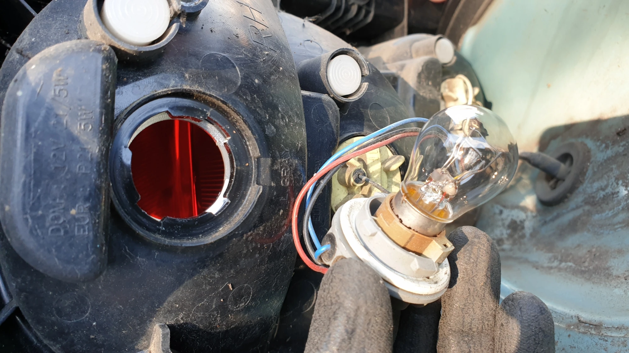 분리된 후방 등화장치 본체에는 세 개의 소켓이 끼워져 있으며 가장 위에 끼워진 소켓에는 미등 겸용 브레이크등 램프가 있으며 가운데는 방향지시등 램프, 가장 아래쪽에는 후진 기어를 넣었을 때 들어오는 램프가 끼워져 있습니다.
